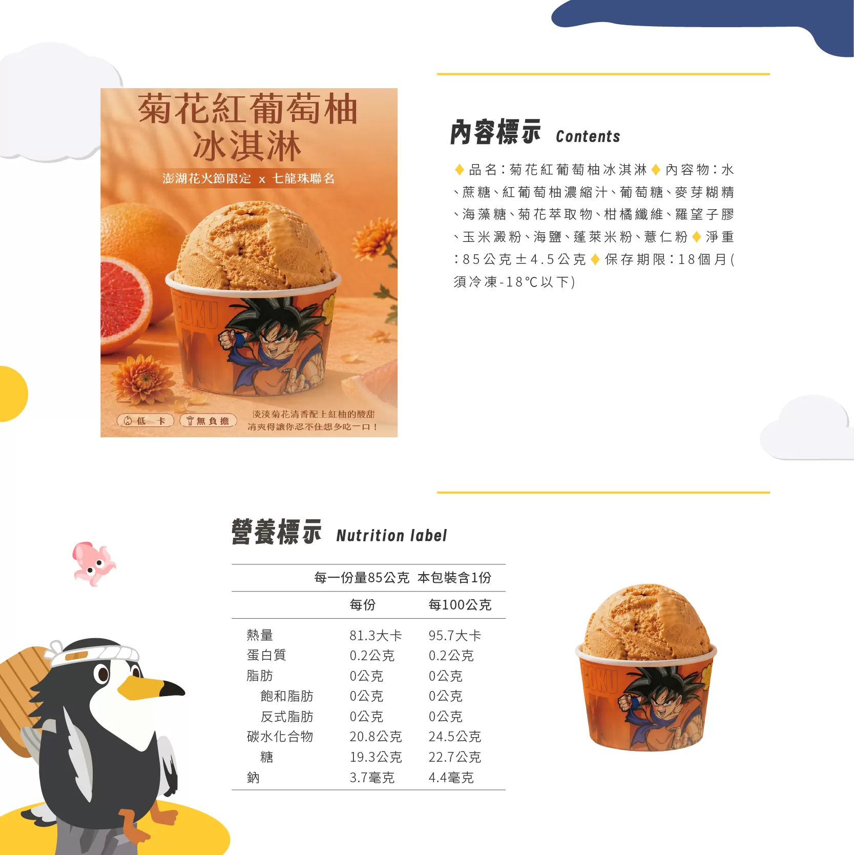 淡淡的菊花清香配上紅柚的酸甜清爽,是我們專為追求極致味覺平衡所研發的獨家比例。我們選用新鮮紅葡萄柚原汁,加入優雅的菊花香氣,將這份大自然的清新完整封存在冰淇淋中。